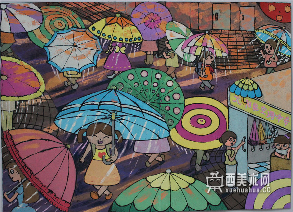 儿童科幻画《太阳能空调伞》欣赏