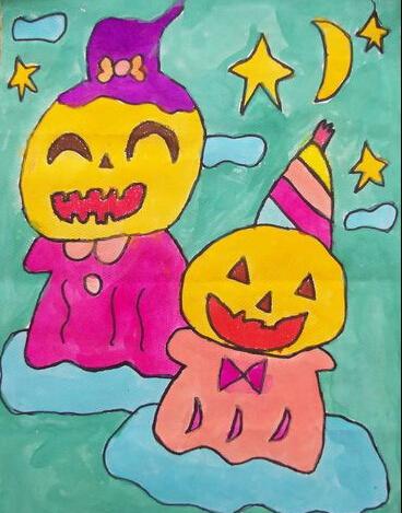 万圣节儿童画图片-两个南瓜