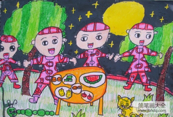 中秋之夜,欢庆中秋节儿童画作品大全