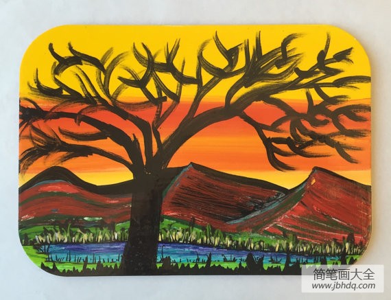 深秋的美景水彩画,儿童画秋天教师范画赏析