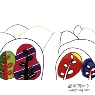4.完成山坡的基本色调后再用点、线、面继续主富画面直至完成。