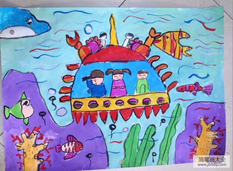 儿童画螃蟹潜水艇