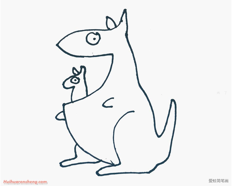 搞笑的袋鼠简笔画画法,站立着摆动双手,莫非是正在翩翩起舞? 身上带着大口袋的有趣动物,画一只跟它亲近一下吧~