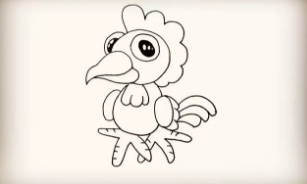 接着画出公鸡的嘴巴.嘴巴头部尖尖的微微向下弯曲着。