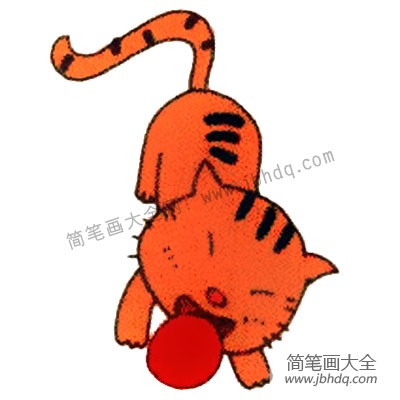 4.画出身子和尾巴,当然还有猫身上的花纹,这样就完成拉!