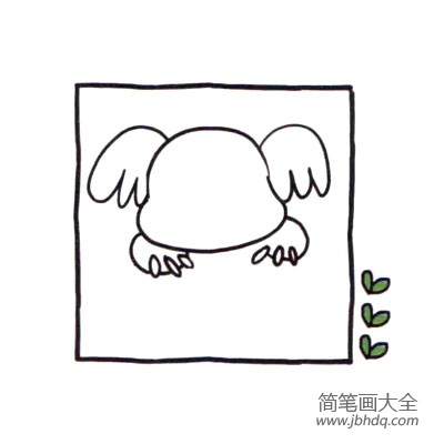 画出五官,鼻子一定要大哦!再画根树枝给它趴着.并涂上颜色。