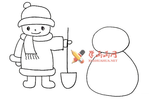 堆雪人的小男孩的简笔画画法教程【彩色】(2)