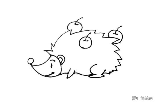 第五步:在小刺猬的背上画上一些小水果,用一个圆和一条线来表示。