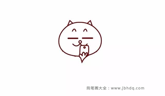 第三步:在画出嗷大喵的鼻子和嘴巴。在眼睛的正前方画它的正在拖着手机的手机和手。