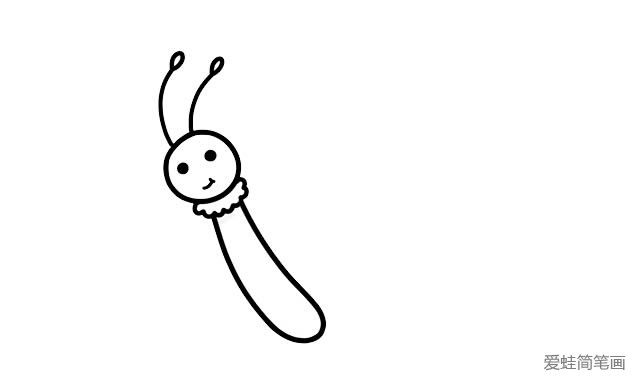 第一步:先画出蝴蝶头部轮廓和五官,并且在它的头上加上两只触角。