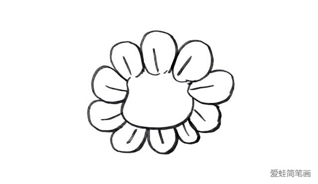 向日葵简笔画步骤四:画出被遮挡的花瓣。