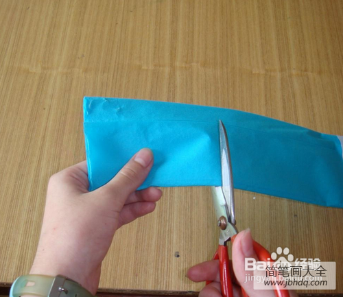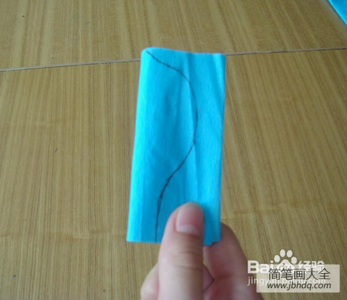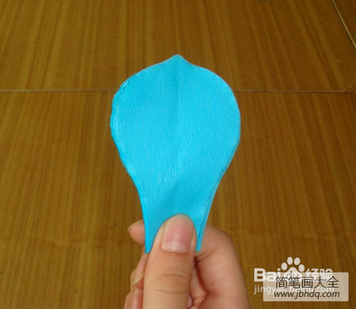 3、将剪下的皱纹纸顺着纹路对折,并画上半个花瓣,用剪刀剪下。