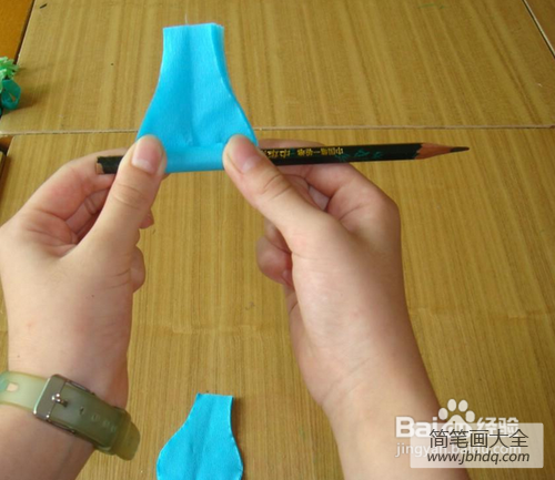 5、用一根铅笔(只要是上下一样粗的笔都可以)放在花瓣的尖上