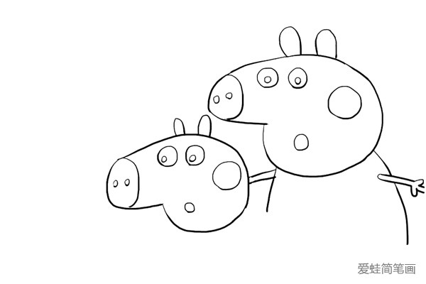 4.画小猪乔治的头轮廓和佩奇的另一只手,注意遮挡关系。