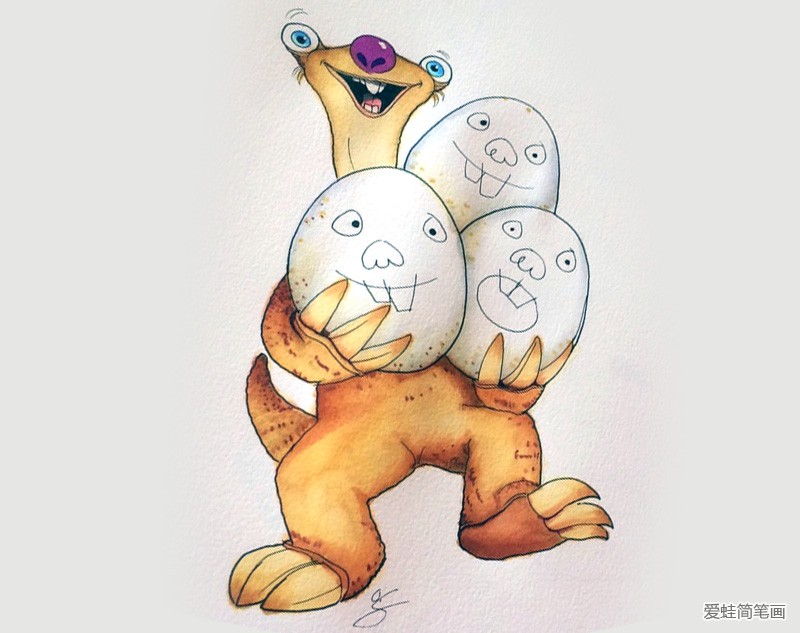 抱着蛋的希德彩铅画