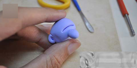 2. 用平头工具刻出耳朵来.