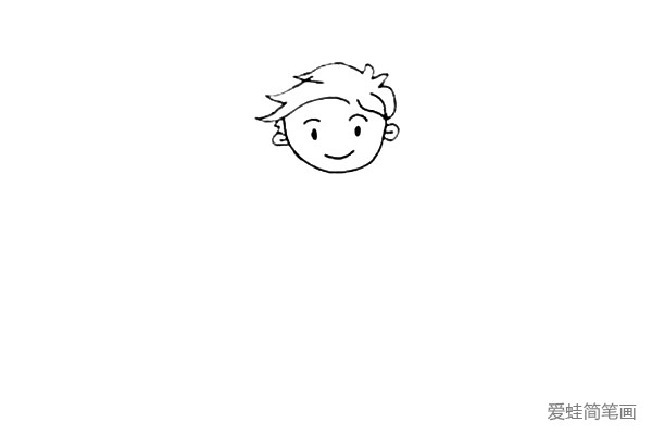第一步:先画出小王子头部及脸部的轮廓,小王子的发型看上去像小草坪。