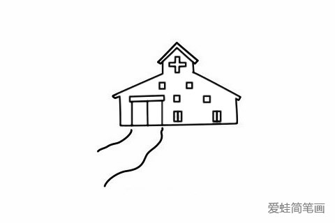 步骤五:画出来医院的大门和小道。