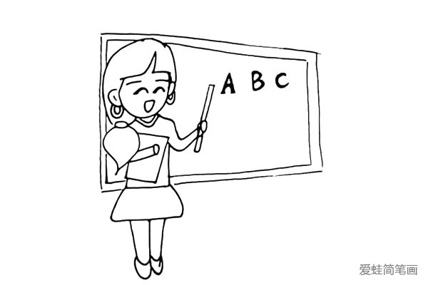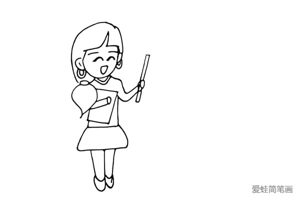 5.还有她的头发也给勾勒出来.老师扎着一个长长的辫子。