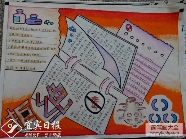 学生们的手抄报版面安排整洁、美观、大方、标题突出、内容丰富、图文并茂,给人以赏心悦目的感觉。反应映了毒品对个人、家庭和社会的危害,传播了防毒拒毒的方法,反映党和政府治理毒品问题的举措、成效。