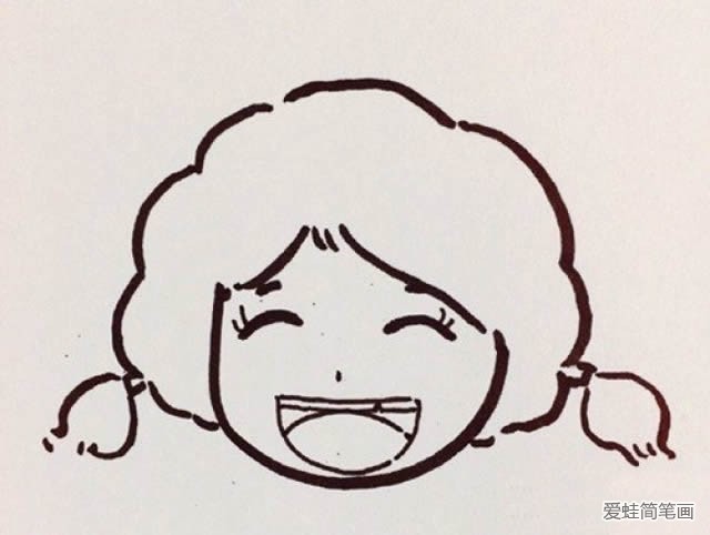 第三步:开始画小女孩的五官,脸部表情也是十分开心喜悦的。可以用开怀大笑来形容
