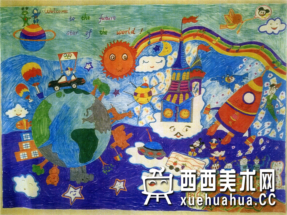 三等奖小学生获奖科幻画《多功能汽车保姆》欣赏