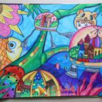 中学生三等奖小学生科幻画作品《太空幻想》