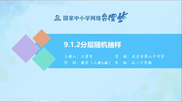 心得体会 提供各种心得体会范文大全,包括学习心得体会、工作心得体会、读书心得体会、培训心得体会、党员心得体会、教师心得体会、军训心得体会、实习心得体会等等 9.1.2分层随机抽样 感谢所有为资源建设提供资料的单位和个人 学科:数学人教A版必修二 册次:高一下 主讲人:王贵军 北京市第八十中学 简介:全国优秀教师,第三批全国“万人计划”教学名师,享受国务院政府津贴专家,北京市数学特级教师,北京市中小学首批数学正高级教师,北京市名师工程实践导师,首都师范大学硕士生实践导师。北京朝阳区第三届学术技术带头人,发表文章数百篇,主编、参编及著作《GeoGebra与数学实验》60余本,现主持开展市区级课题2项,参与国家及课题一项,区级课题1项。指导培养市区骨干教师数百名,培养了大批考入清华北大等高校的优秀学生。现任北京市第八十中学数学教师兼任数学教研组长。 点击观看 友情链接 汉语拼音 毛绒玩具