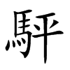 ◎ 康熙字典解释 【亥集上】【馬字部】 駍; 康熙笔画:15; 页码:页1435第37【玉篇】平悲切,音皮。馬名。 又【集韻】披耕切,音怦。與軯同。【揚雄·甘泉賦】聲駍隱而歷鐘。